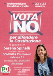 Prima iniziativa dell’Unione Comunale PD di Vaglia sul referendum costituzionale del 22 e 23 marzo.