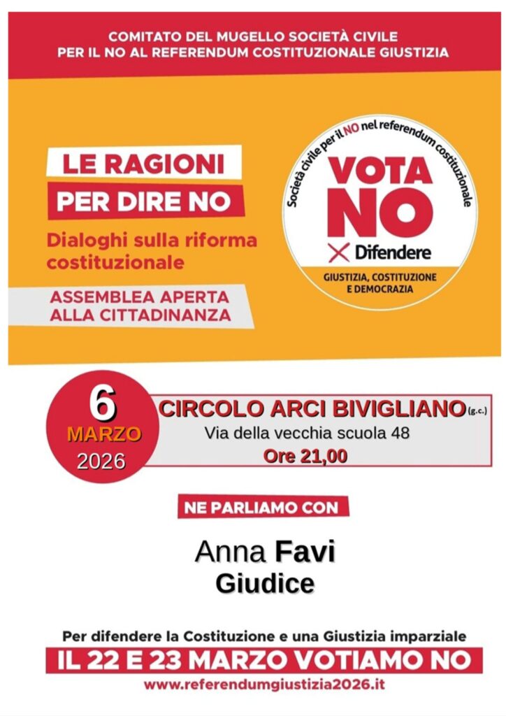 Il 6 marzo ci riuniamo al Circolo ARCI di Bivigliano, che ringraziamo per l’ospitalità, per capire meglio cosa accadrà con la riforma e perché il Comitato del Mugello sostiene le ragioni del NO.